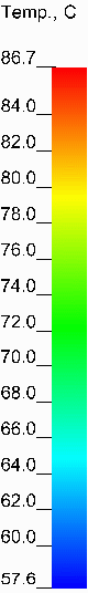 In addition, to text and XY plots of results, color contour plots are displayed showing cold plate and fluid temperatures and power